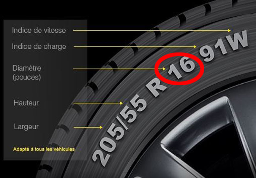 Le tarif du montage et équilibrage d’un pneu est  déterminé par sa dimension, plus précisément par le diamètre de sa jante,  l’indice après le R, ici c’est le 16 (pouces).